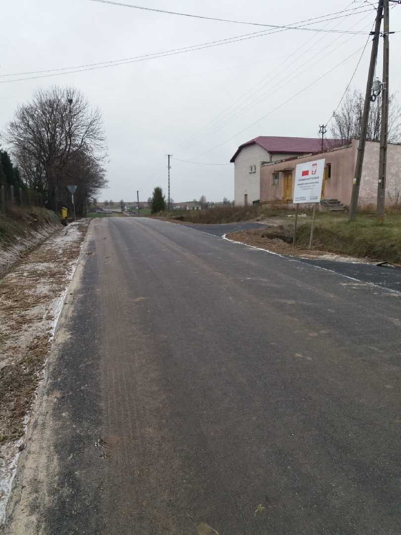 Długość remontowanej drogi 815mb; szerokość nawierzchni 5,00mb. Zakres robót obejmuje: roboty przygotowawcze; roboty ziemne i rozbiórkowe; remont nawierzchni warstwa wiążąca AC11W 50/70 gr. 4cm, warstwa ścieralna AC11S 50/70 gr. 4cm – 4130m2; remont 16szt. zjazdów; wykonanie doświetlenia przejścia dla pieszych LED; oznakowanie pionowe i poziome; plantowanie korony nasypów i poboczy, montaż tablicy informacyjnej.